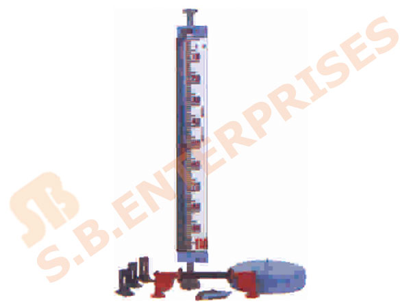 With rising liquid level in the tank, the float rises up taking the magnetic counterweight in the enclosure down. The counter weight being magnetic in nature couples with the indicator (red coloured) which moves in the glass tube and can be easily read against the calibrated scale to indicate the liquid level in the tank. This instrument being completely sealed and indicator mechanism being isolated from the moving parts, magnetically, it ensures complete sealing and prevents loss of pressure or vapour.